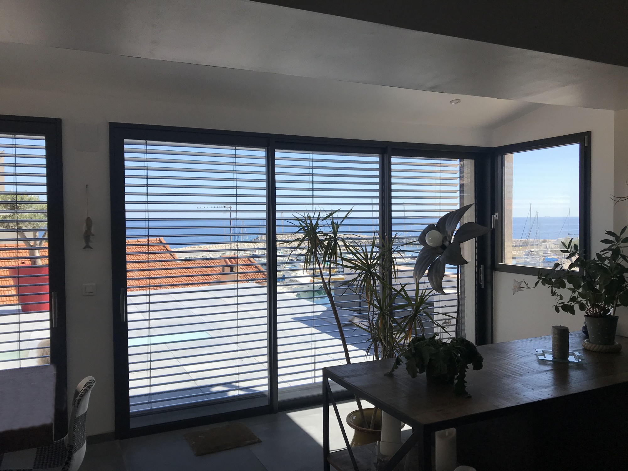 En plus de sa fonction de protection, le BSO réduit la visibilité de l'extérieur afin de vous protéger de potentiels regards indiscrets et de vous offrir une totale intimité. Les lames peuvent rester fermées en partie basse et être ouverte sur la partie haute.