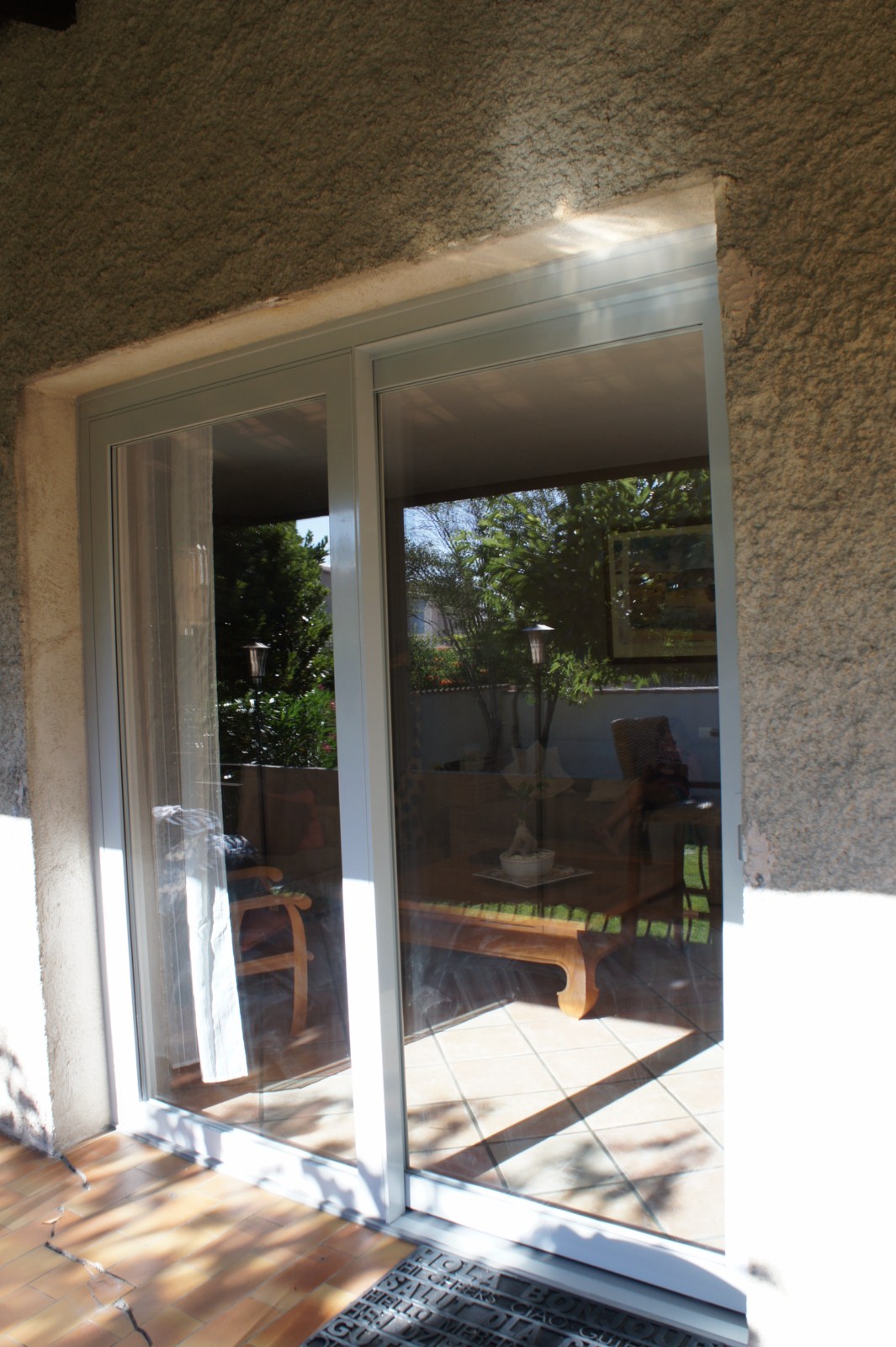 Châssis coulissant à levage en PVC de marque FINSTRAL posé à Ensuès-la-Redonne.