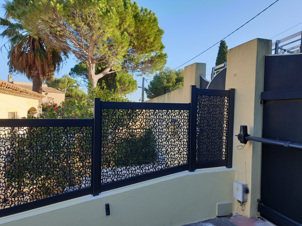 Cette clôture en aluminium sur mesure a été posée près de la Cote Bleue à Aix en Provence.