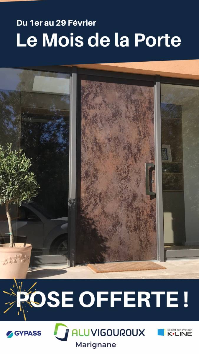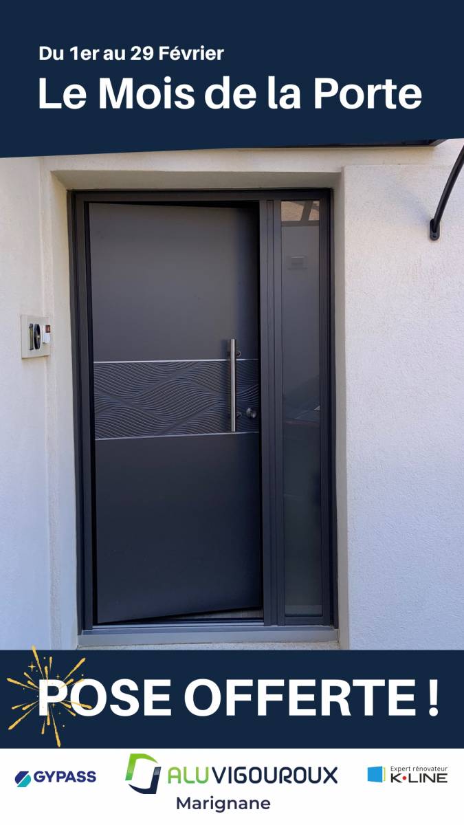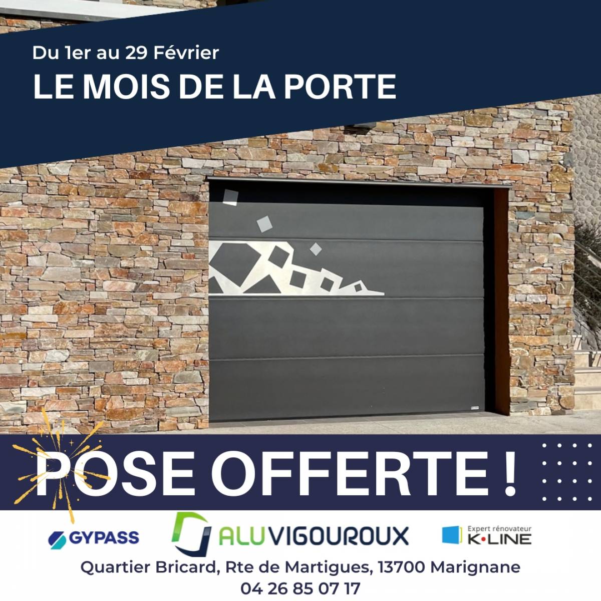 Chez Alu Vigouroux à Marignane, le Spécialiste de l'installation de portes de tout type (porte d'entrée aluminium, porte de garage sectionnelle, porte latérale, porte enroulable) en février, c'est le mois de la PORTE !
