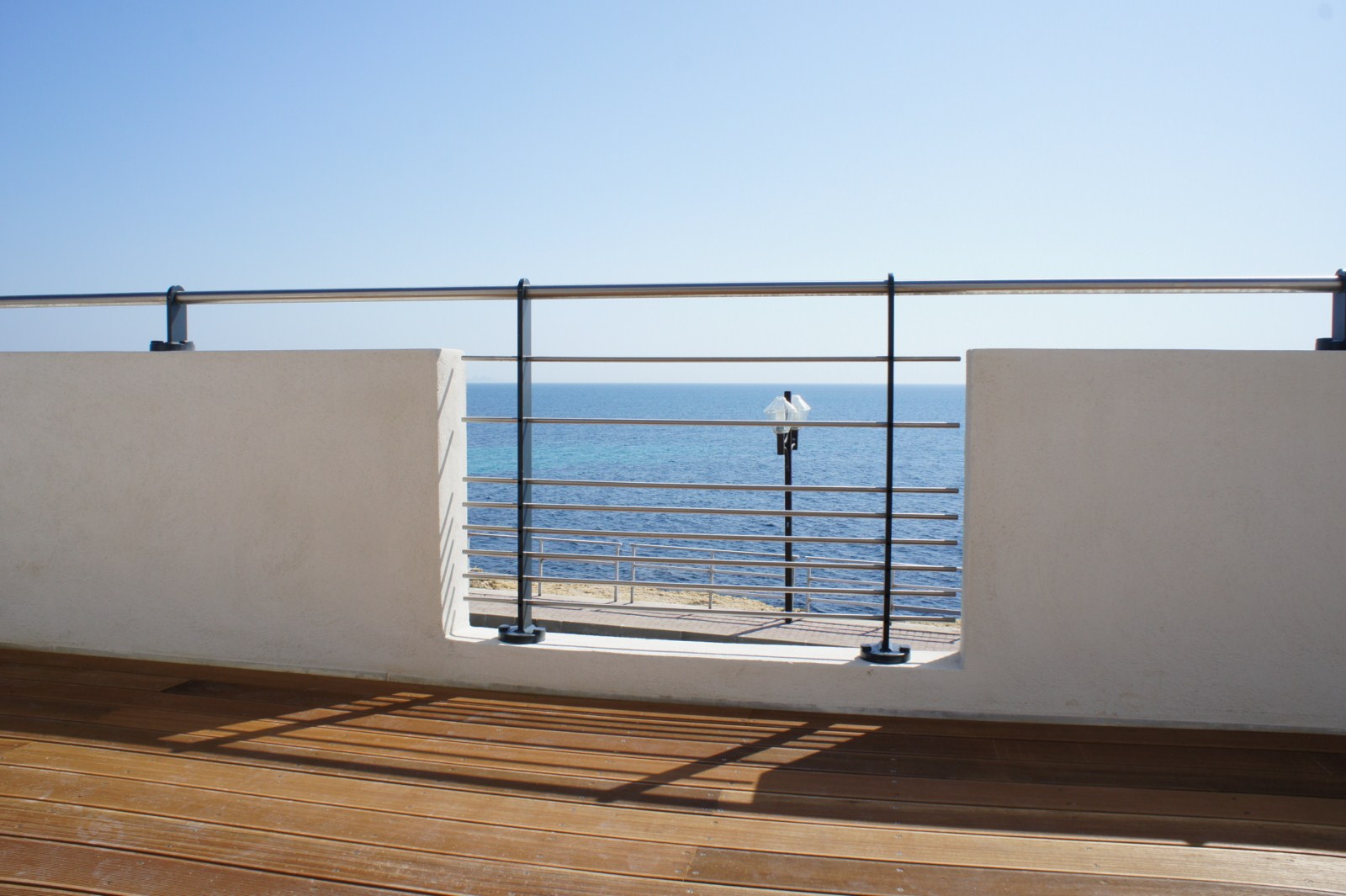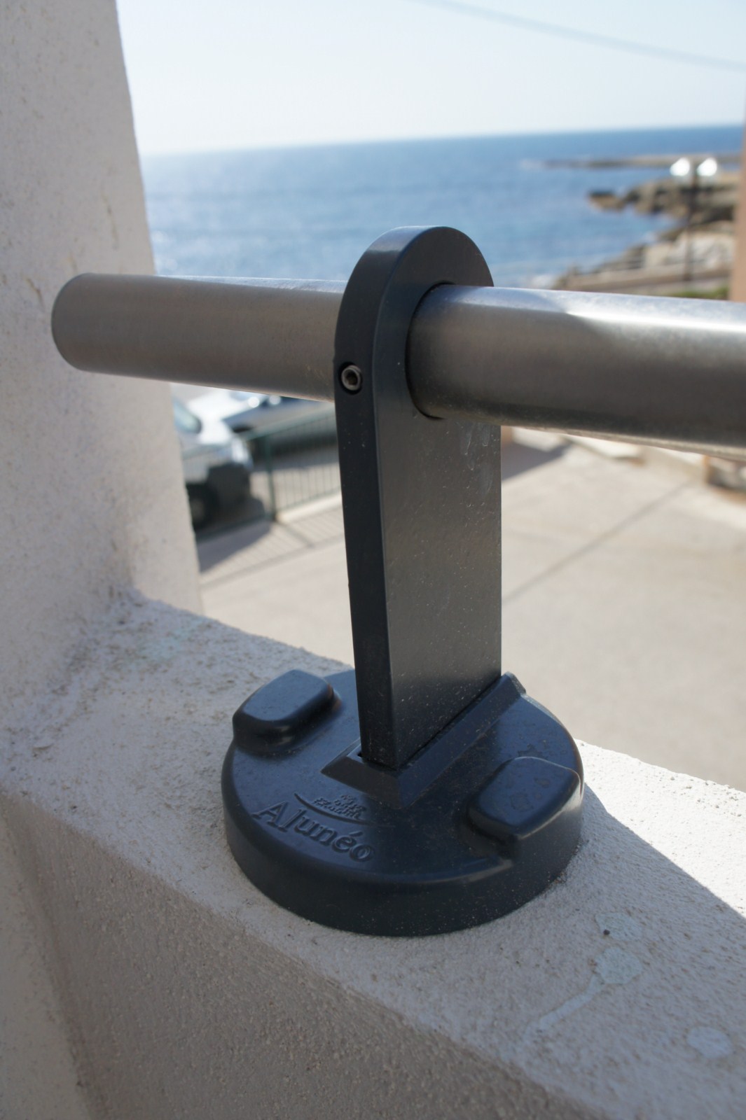 Installé à Sausset Les Pins ce modèle est composé d'une main courante ronde et de lisses en INOX,