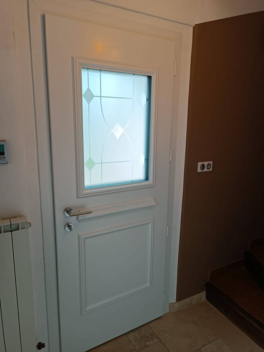 Équipée d’un vitrage décoré Topaze dépolie pour permettre une entrée de lumière tous en gardant votre intimité. La porte est équipé d’une serrure 5 points à bouton intérieur, d’une plinthe basse et d’une cimaise moulurée, elle conjugue sécurité, esthétisme et isolation.