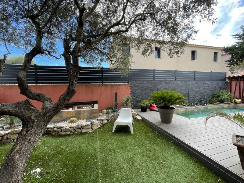 L’aspect persiennes de cette clôture permet une transition esthétique entre les différents espaces du jardin. Elle valorise notamment l’environnement de la piscine tout en créant une séparation discrète et raffinée avec le voisinage.