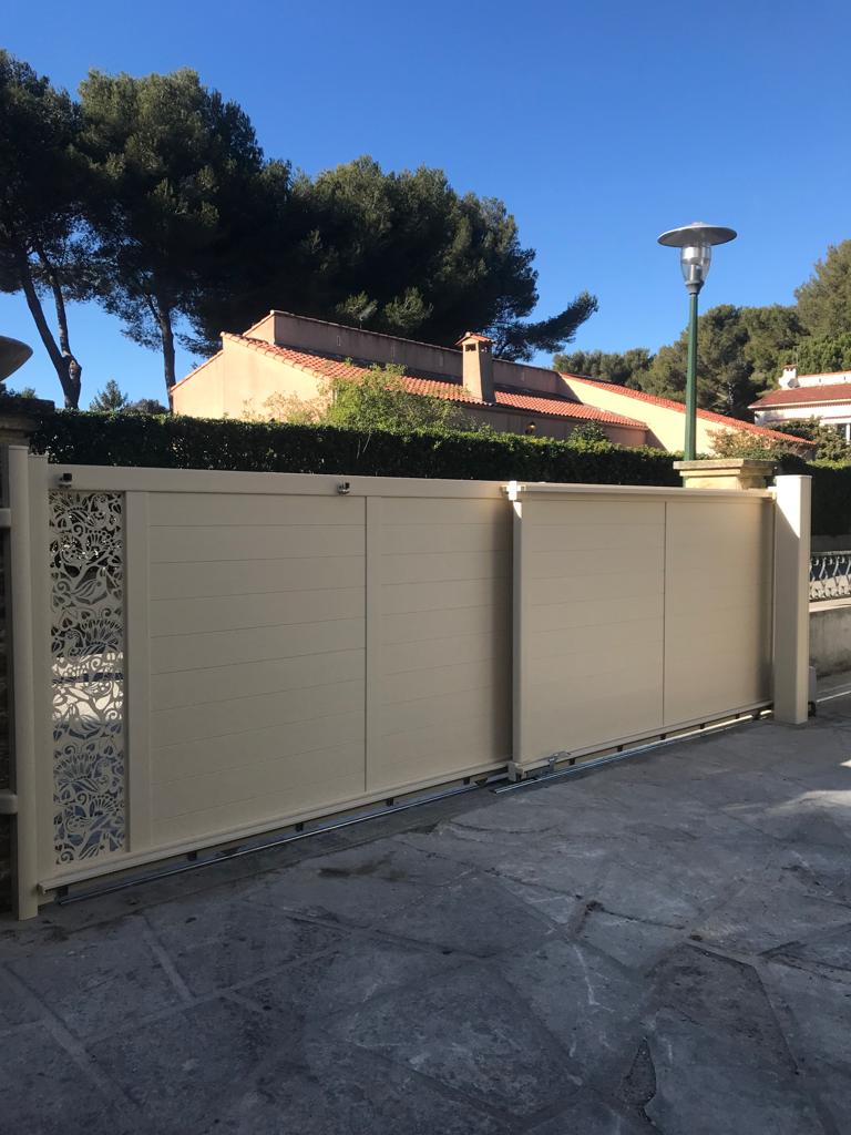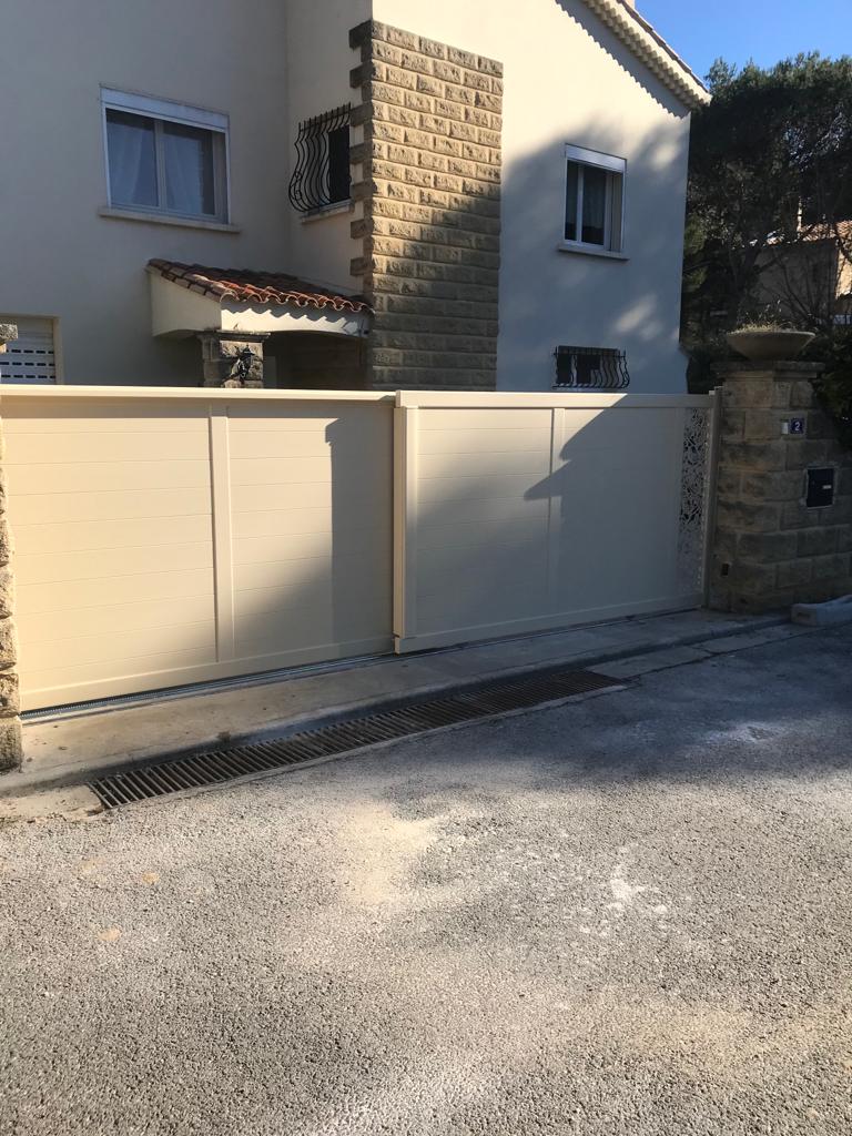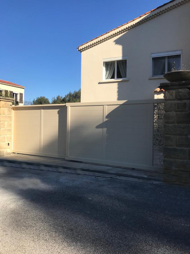 Alu VIGOUROUX vous présente ce portail télescopique installé à Sausset-les-Pins.Cette réalisation permet de s'adapter à tous les types d'entrées même les plus petites qui ne bénéficient pas d'un espace de refoulement suffisant pour un portail coulissant.