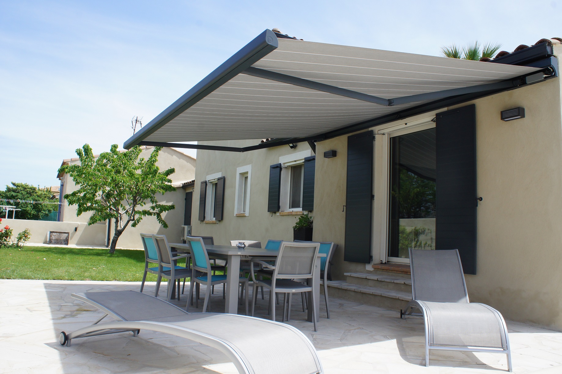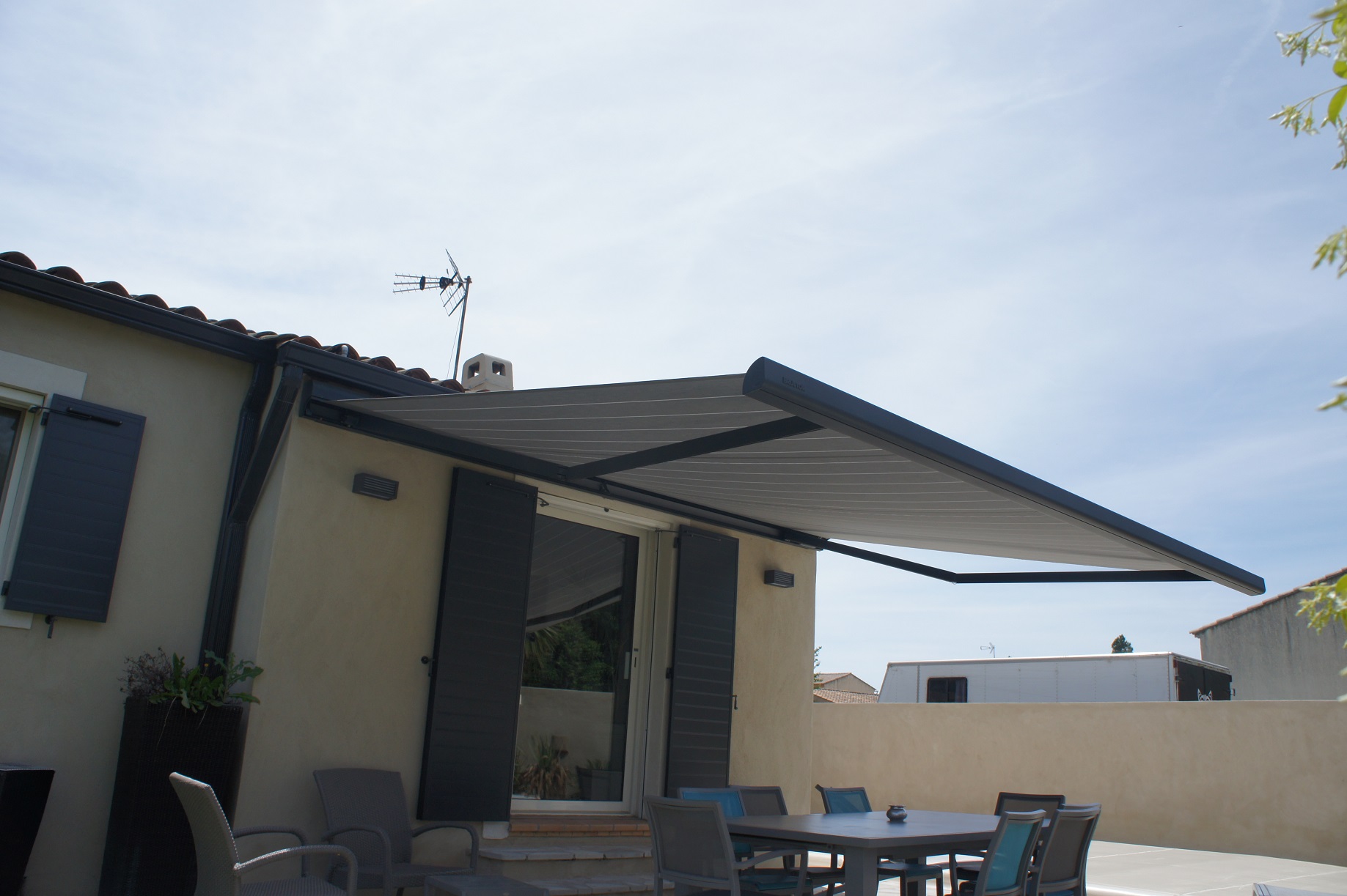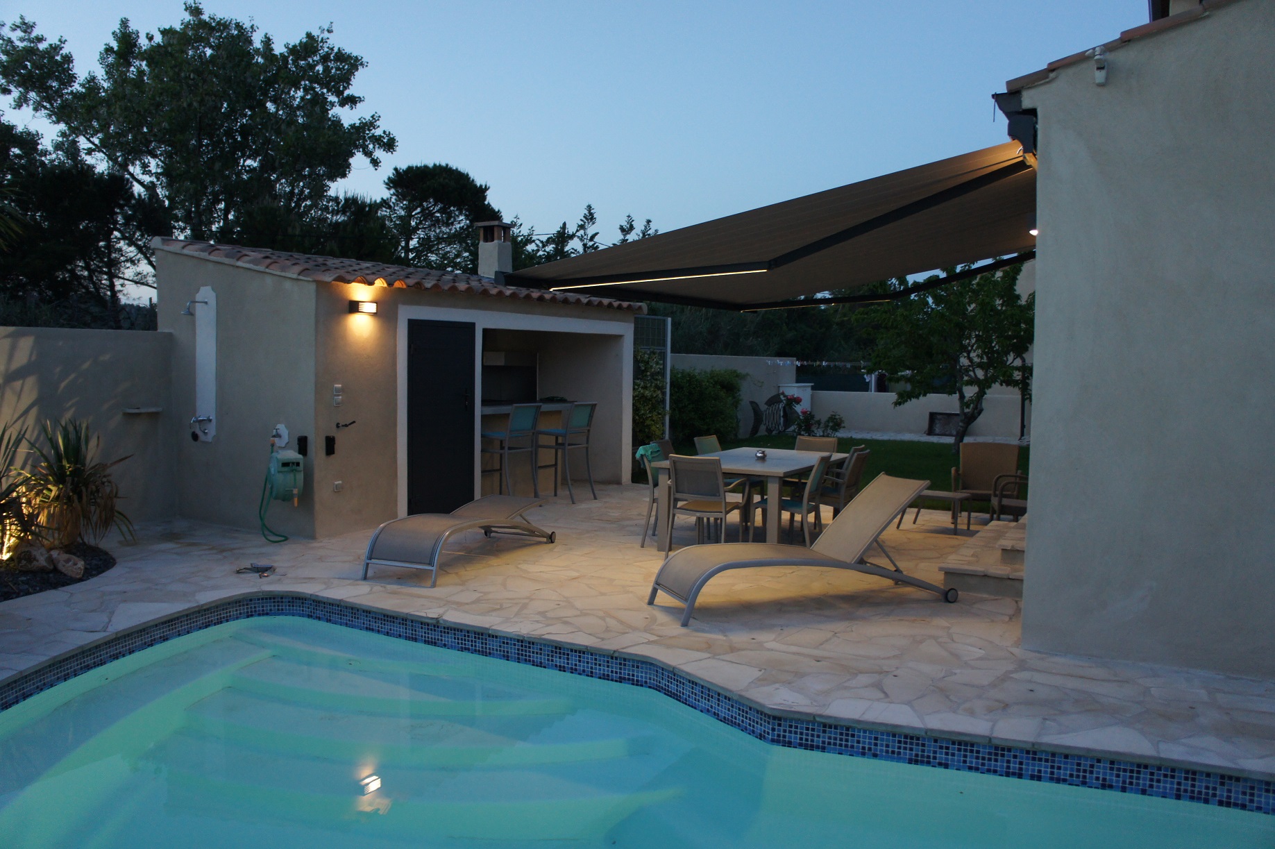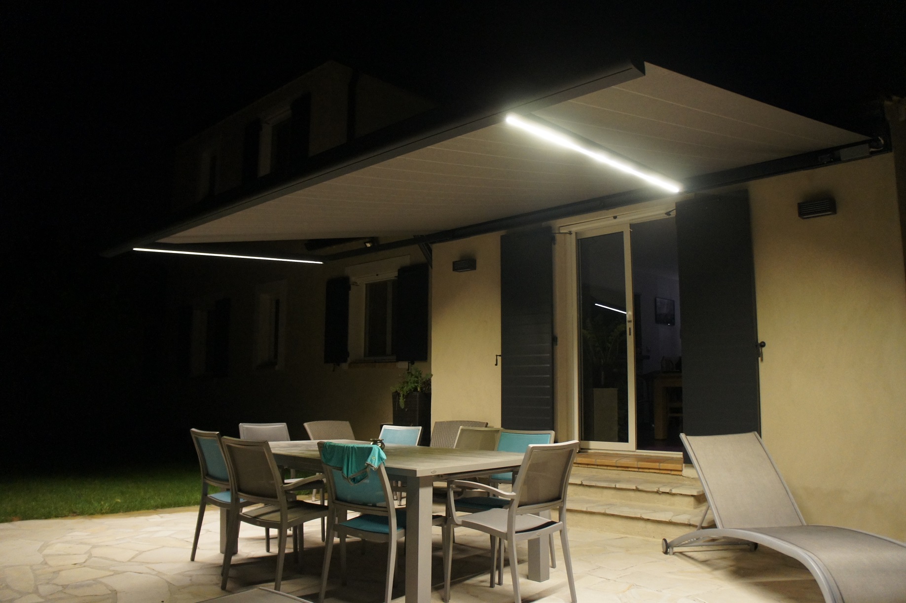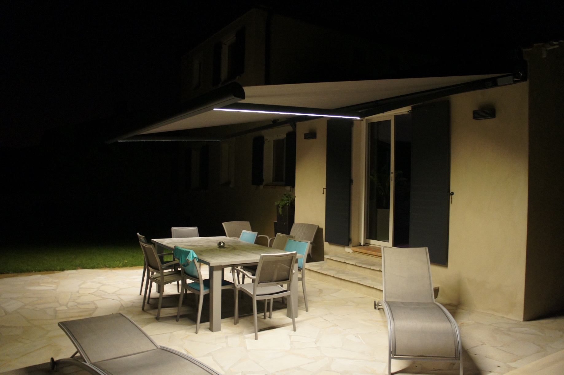 Alu Vigouroux vous présente ce store banne avec LED de la marque Brustor installé à Carry-le-Rouet.