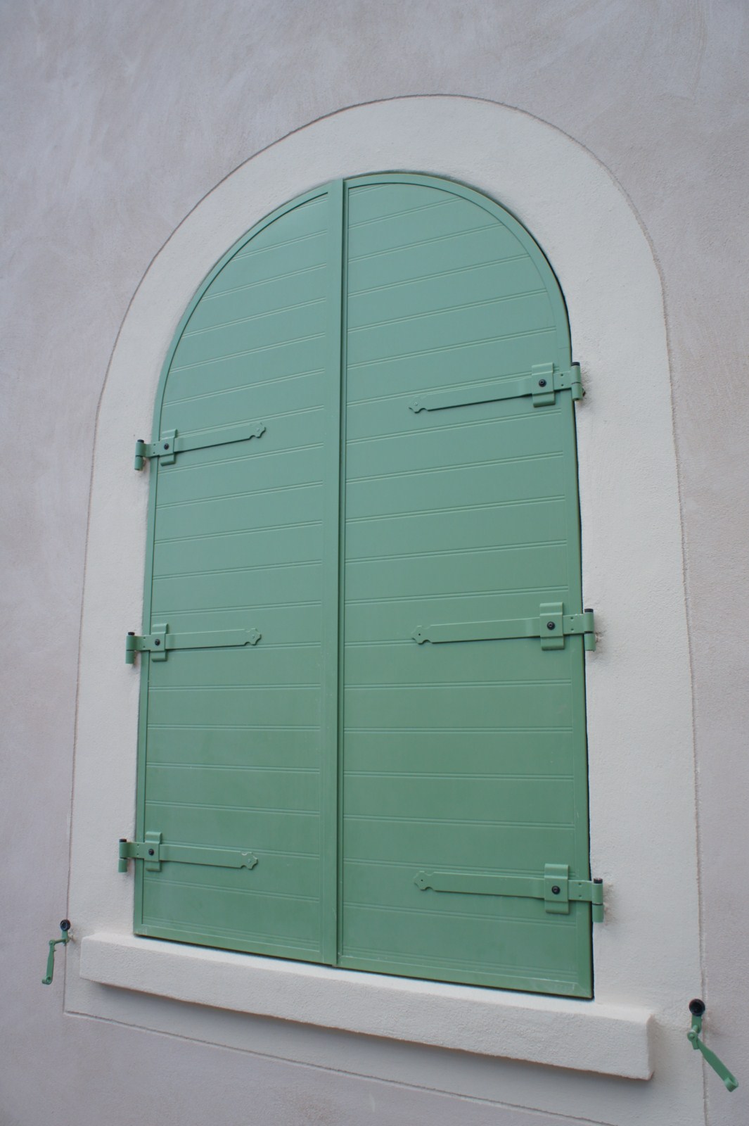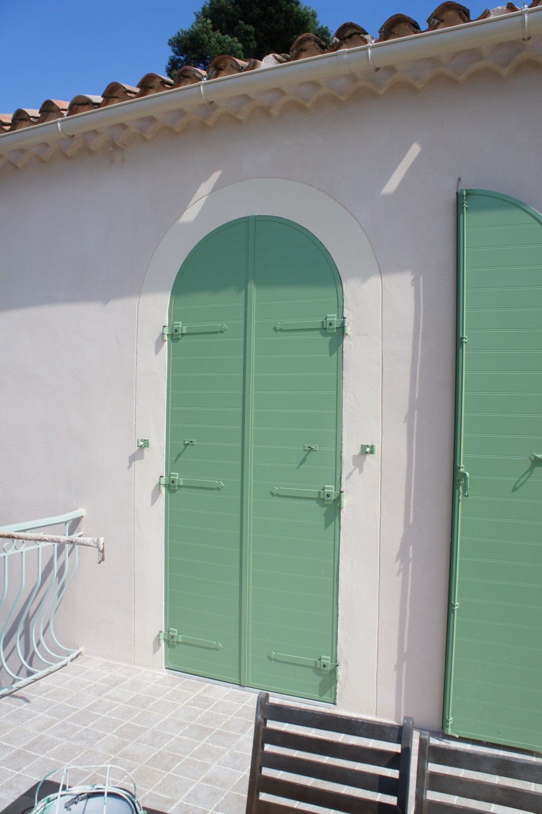 Pentures, contre pentures, espagnolette, crochets et crémaillères laqués à la couleur des volets