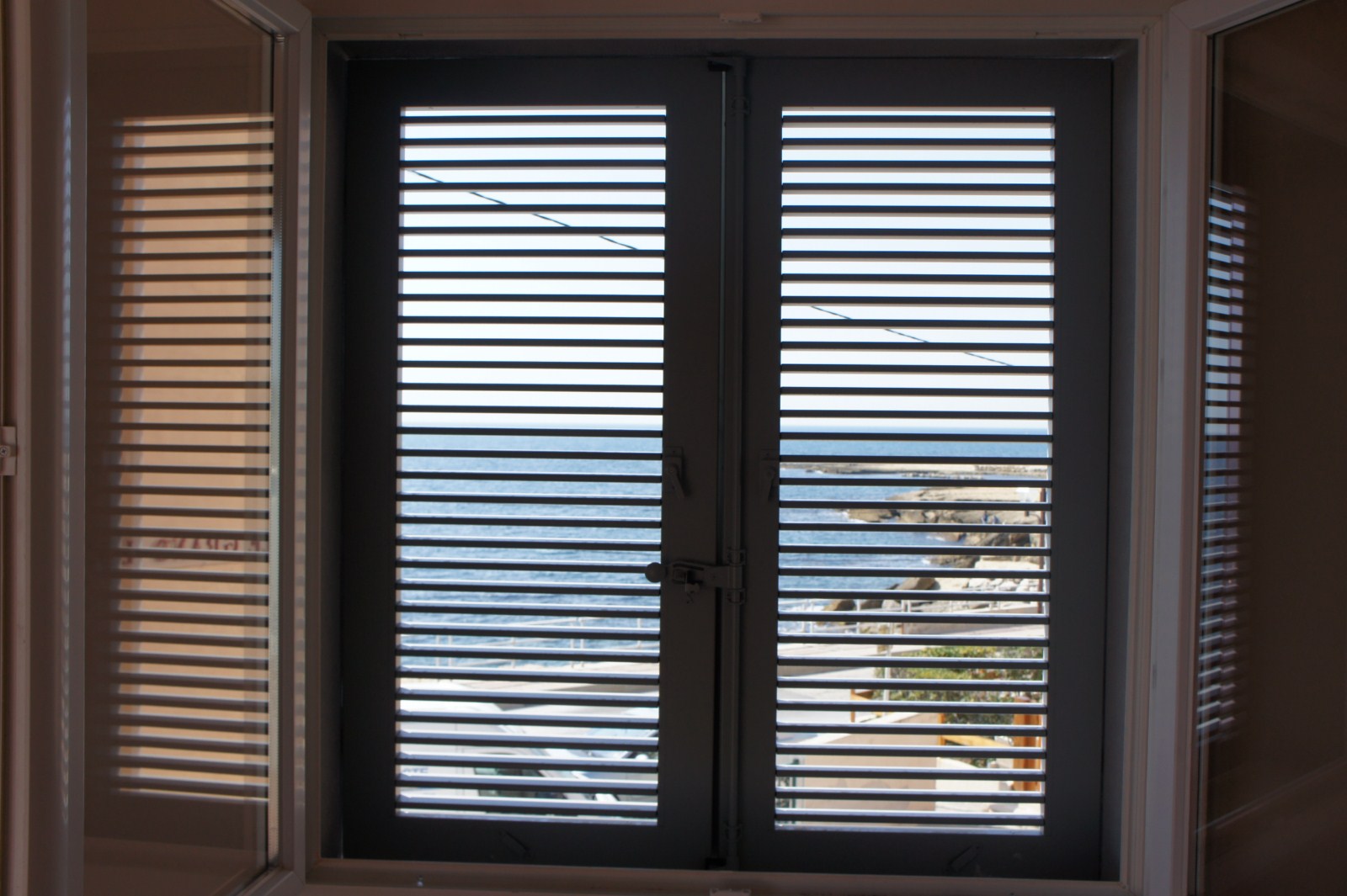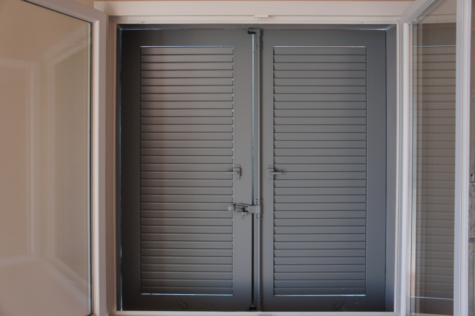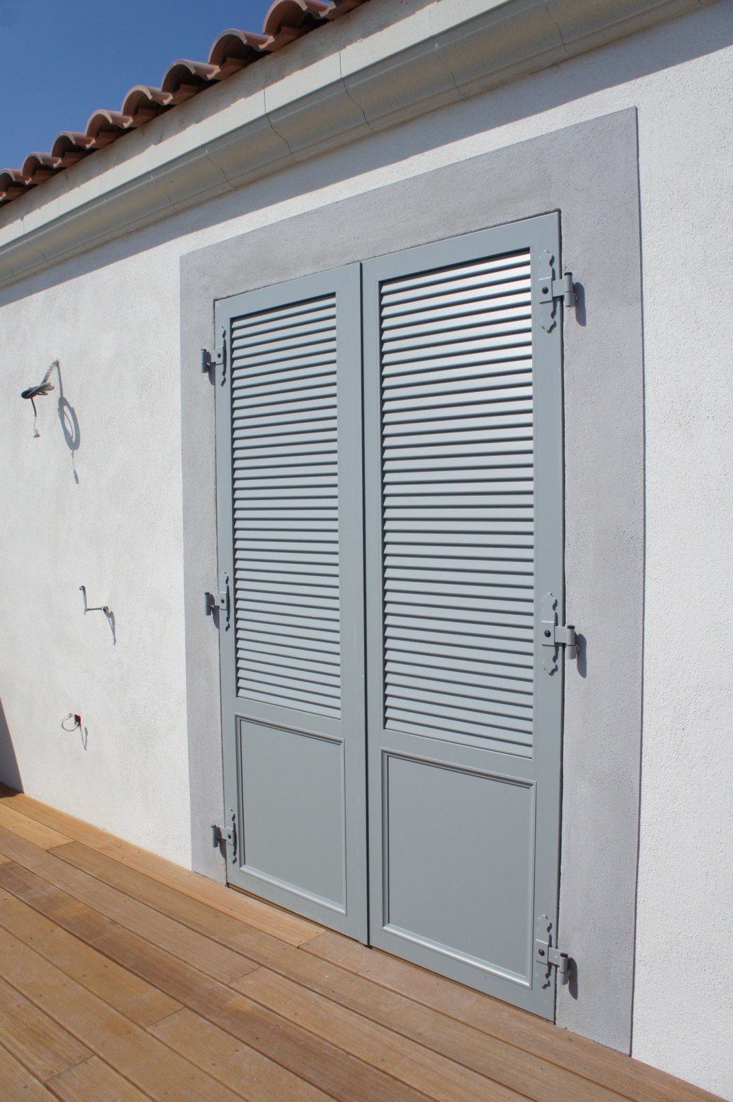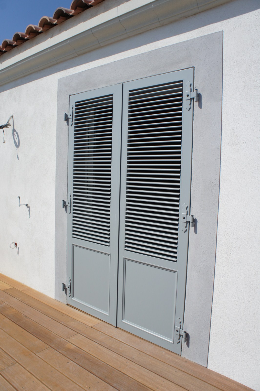 Partie haute à lames orientables, partie basse panneaux pleins lisses