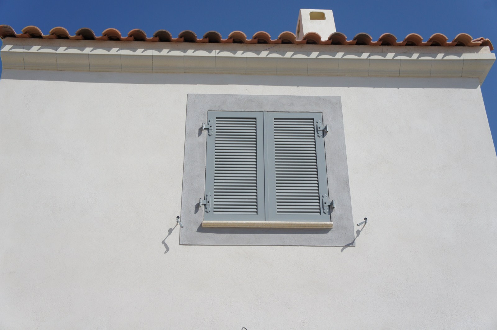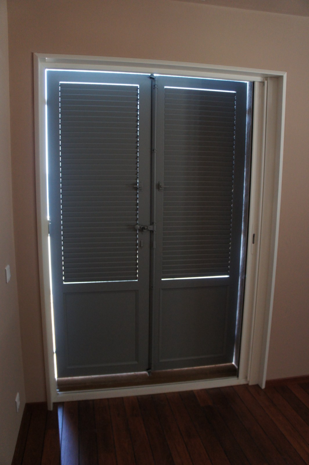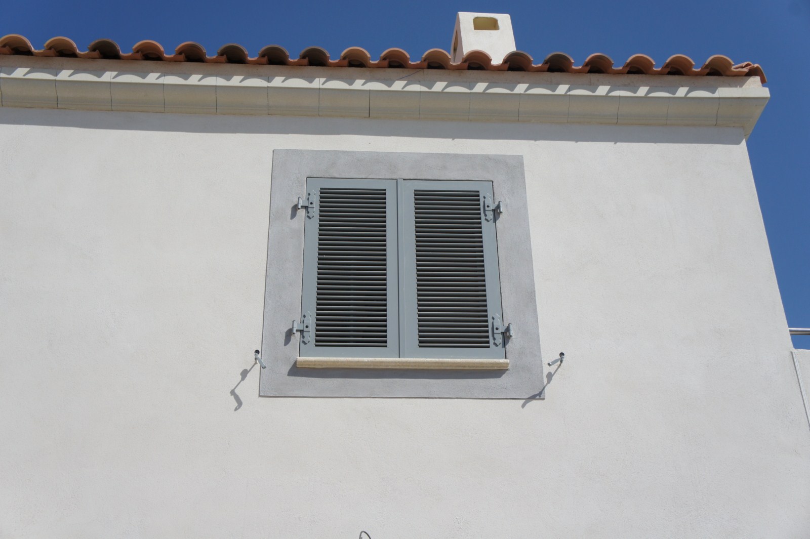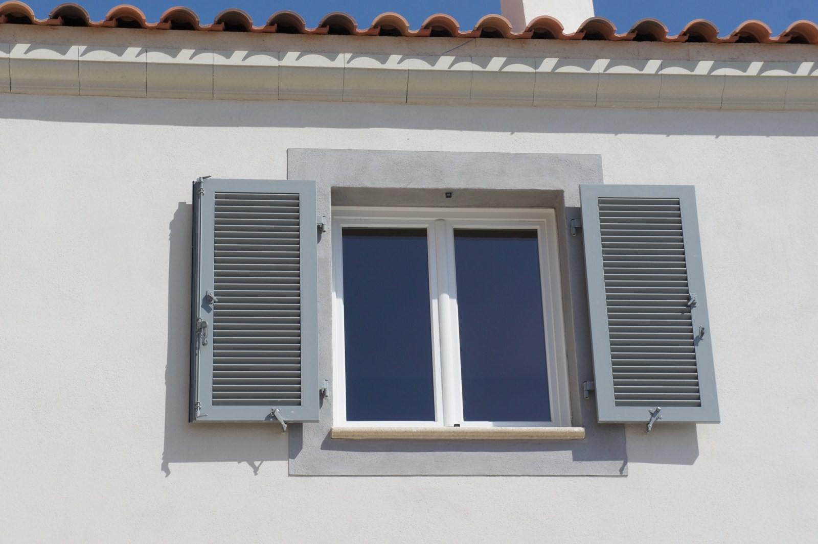 Partie haute à lames orientables, partie basse panneaux pleins lisses